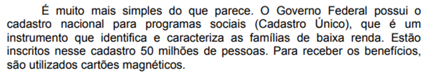 Mas, na sua opinião, o banco de dados do CadÚnico não é muito restrito? O PT entende que sim. Ora, somos mais de 200 milhões de brasileiros e o CadÚnico representa apenas ¼ da população.
